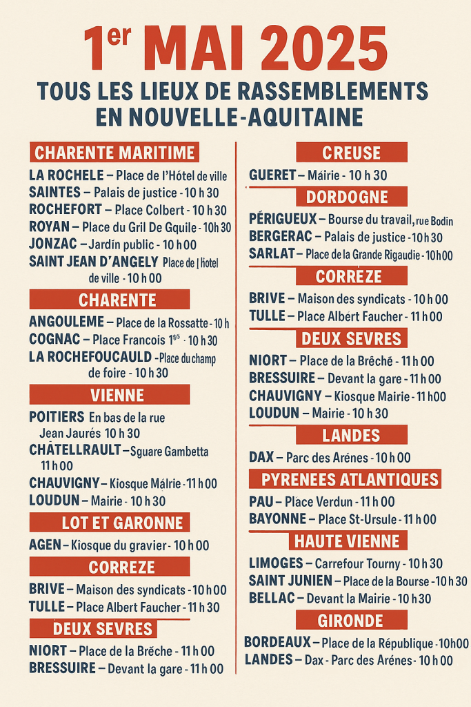TOUS LES LIEUX ET HORAIRES DES RASSEMBLEMENTS EN NOUVELLE AQUITAINE