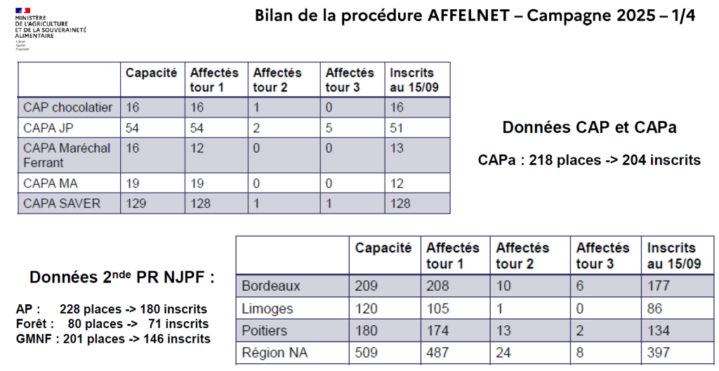 – Bon recrutement en CAPa mais il faut s’attendre à des déperditions en cours d’année (réorientation, apprentissage).