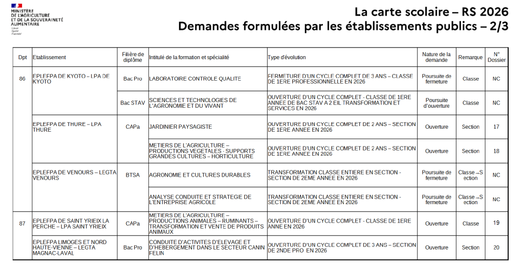 – Poitiers Kyoto : fermeture Bac Pro pour ouverture Bac STAV