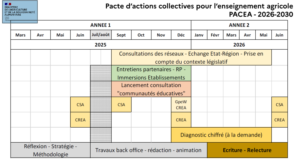 La DRAAF le recueil des propositions et l’accompagnement seront assurés par une structure publique (NEOLAB). Un questionnaire va être mis en ligne à destination de l’ensemble des établissements agricoles qui diffuseront à l’ensemble des équipes et des familles. Des rencontres seront également organisées dans les établissements et les réseaux. L’objectif est une écriture du projet à la fin du 1er trimestre 2026.